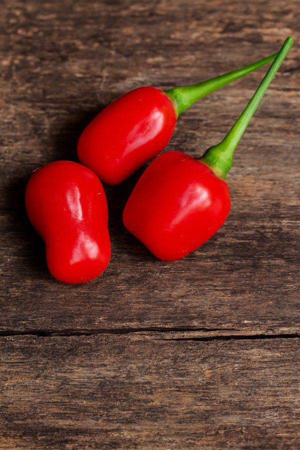 Sharper and more immediate than the yellow type. Heat builds quickly and lingers with a clean burn. Comparable to cayenne or Thai bird’s eye in intensity, but with a more aromatic finish.